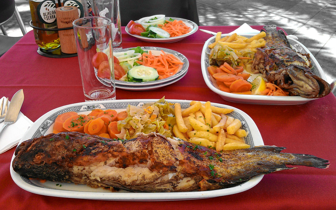 Наш обычный перекус состоял из приготовленных на плоском камне лепешек (bolo do caco) и моллюсков (lapas grelhadas) с травами и чесноком. Порция моллюсков стоит три–пять евро (268.4–(447.4 рублей) в зависимости от места, поэтому обед редко обходился нам больше десяти евро (894.8 рублей) на двоих. Ужин с мясом, рыбой с алкоголем на двоих в среднестатистическом ресторане стоил не дороже 40 евро (3,579.3 рублей), а целое праздничное застолье с шампанским, десертами и парадно одетыми официантами в дорогом по местным меркам Casa Velha — 100 евро (8,948.2 рублей) на двоих. Вкусно и недорого поесть можно примерно везде, но выглядеть заведения будут одинаково с дизайном в духе 1990-х, высокий уровень сервиса и спешиалти-кофейни сюда еще не дошли.