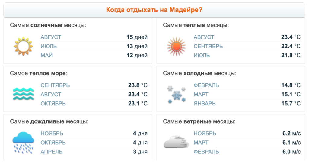 «Остров вечной весны», как называют Мадейру местные жители, прекрасен для отдыха круглый год. Стоит учитывать лишь некоторые особенности разных сезонов: