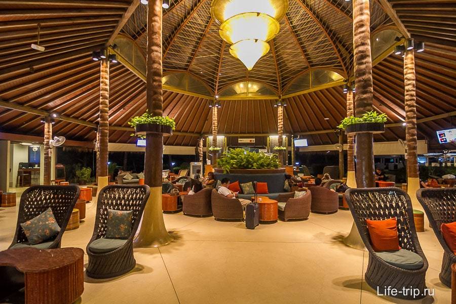 Залов ожидания в классическом их виде как таковых в аэропорту Самуи нет, поэтому лучше приезжать непосредственно к началу регистрации на рейс, а если вы используете онлайн-регистрацию, то хватит времени, если прибудете за час-полтора до вылета. В то же время по периметру постройки имеется некоторое количество плетеных кресел, где можно посидеть перед вылетом, попить бесплатного кофе, какао или чая. Имеется даже небольшая оборудованная детская площадка. Для встречи прилетающих также нет смысла приезжать заранее, так как встречающих в само здание аэропорта не пускают и придется ожидать на улице, где бывает жарко.