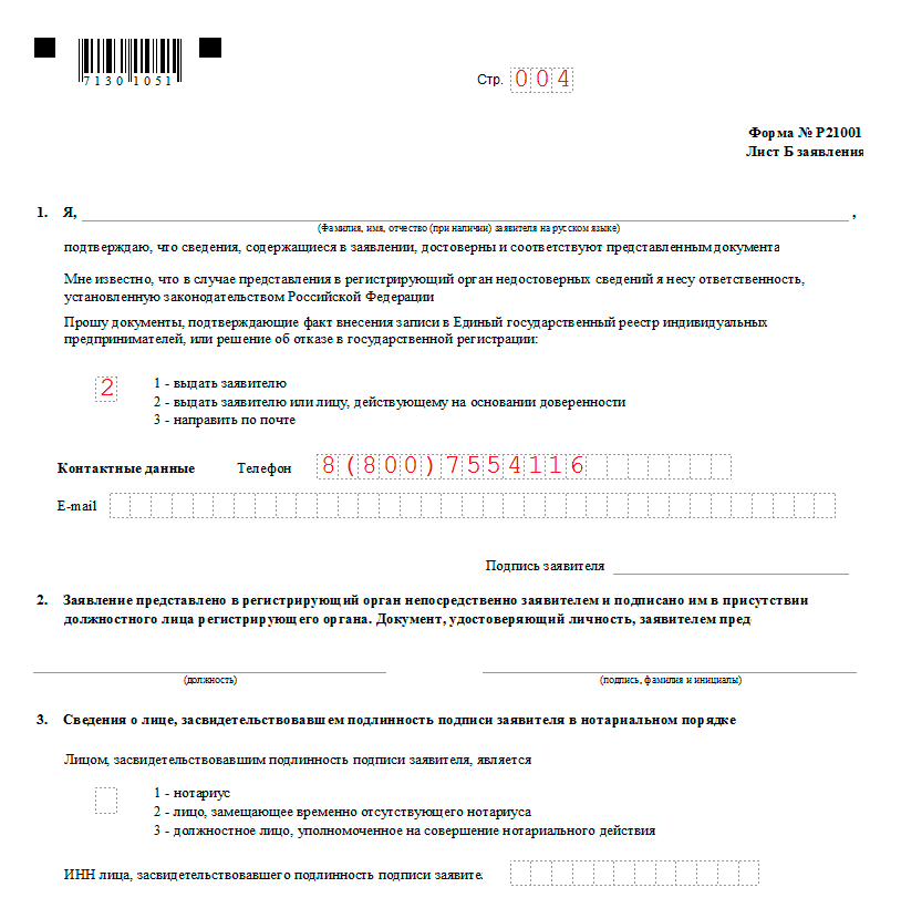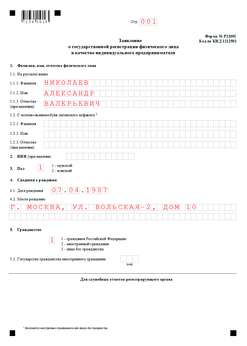 При заполнении заявления по форме Р21001 для регистрации ИП следует обратить внимание на то, что для резидентов России потребуется заполнить дополнительный лист