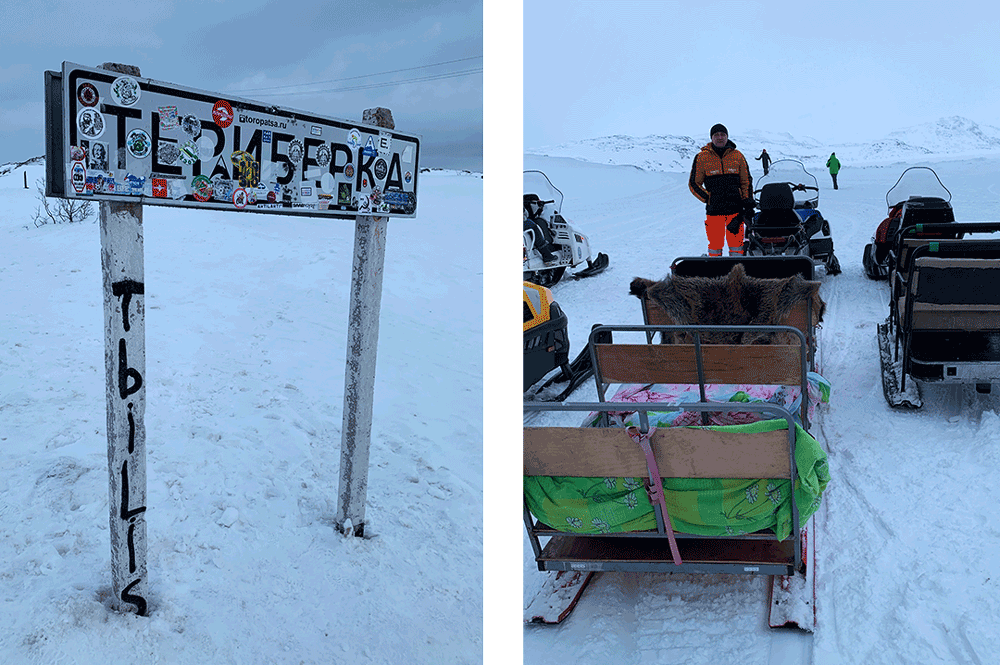 Село находится в 120 километрах от Мурманска. Треть пути проходит по разбитой грунтовой дороге. Ее начали ремонтировать два года назад, но к моменту выхода статьи асфальтом покрыли меньше 10 километров трассы ближе к Мурманску. Больше 30 километров едешь скорее по колее в снегу, нежели по дороге. Еще зимой трассу Р21 «Кола» часто заметает — проверить, не закрыли ли ее, можно на сайте Мурманскавтодора. Я переживала, что могу пропустить рейс из Мурманска в Санкт-Петербург, если трассу из Териберки перекроют из-за метели, но мне повезло.