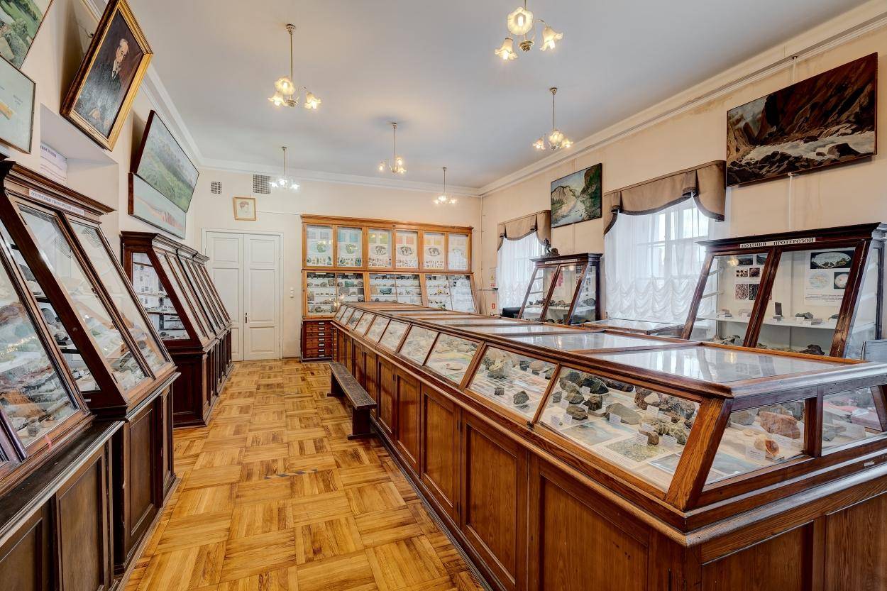 Считается, что Палеонтологический музей был основан в 1868 году, когда профессор-геолог А. А. Иностранцев стал хранителем Геологического кабинета. Сейчас музей объединяет две площадки. В Геологическом кабинете на Университетской набережной собраны окаменелости, представляющие документальную историческую летопись развития жизни на Земле: от древнейших форм, которым несколько миллиардов лет, до животных — современников древнего человека. Коллекции окаменелостей, найденные на территории бывших Российской Империи и СССР, собирались с середины XIX века по настоящее время и отражают фанерозойскую историю, то есть жизнь Земли ≈542 миллионов лет назад.
