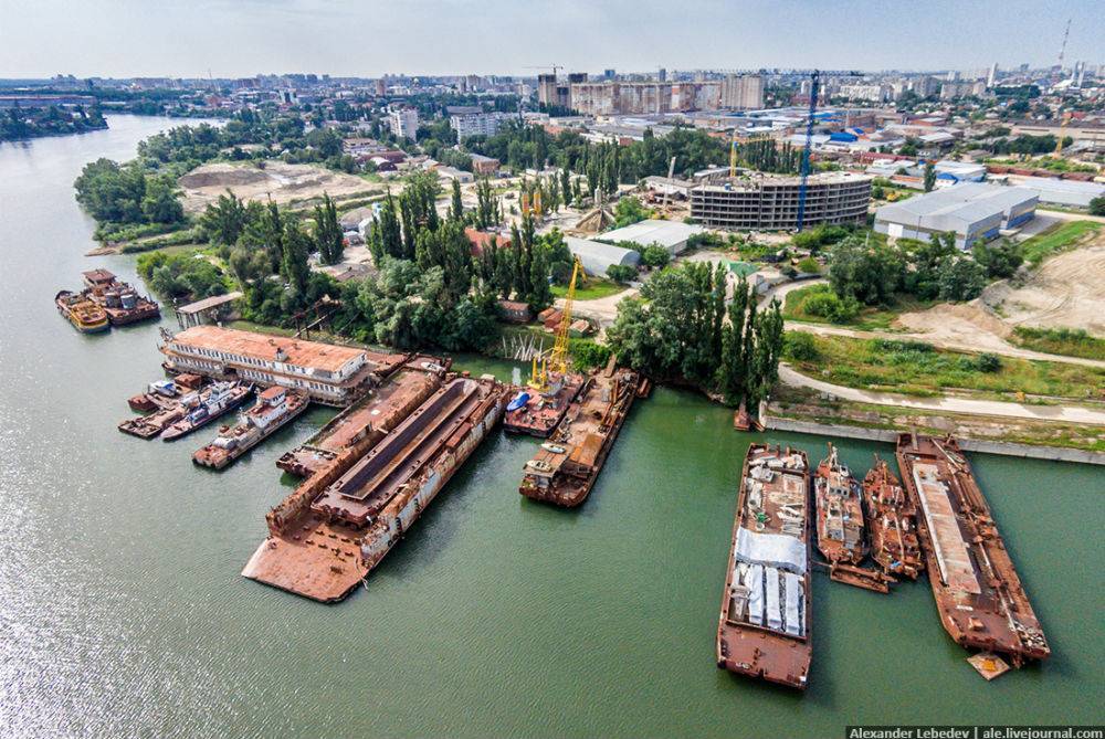 6. Кладбище речных кораблей. На месте старого грузового порта, относительно недалеко от центра города, заброшенные баржи коротают свои дни в затоне. Место это довольно специфическое и мрачное, однако весьма интересное. По двум сторонам затона стоят старые баржи и краны, доки и хозпостройки. Здесь довольно чисто и практически нет мусора, свойственного заброшенным местам.