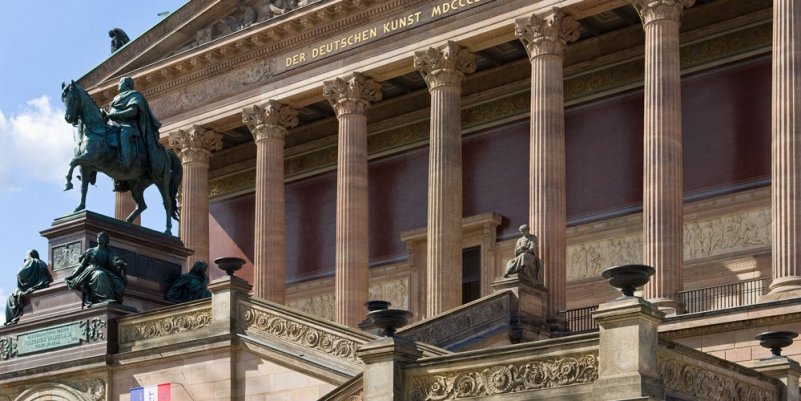 Старая национальная галерея находится в Берлине на Музейном острове, где кроме нее собралось еще четыре известных берлинских музея: Старый музей, Новый музей, Пергамский музей и музей Боде. В Старой национальной галереи хранятся коллекционные собрания различных эпох: романтизма, классицизма, импрессионизма и раннего модернизма. Построить подобное место планировали еще в 1815 году, но только в 1841 году начались строительные работы, а продлились они двадцать лет. Торжественное открытие галереи прошло в 1861 году. Главными экспонатами галереи на то время стали 262 картины известных германских и мировых художников, их преподнес в качестве подарка немецкий банкир Иоганн Генрих Вагнер. Многие до сих пор считают, что только благодаря такому щедрому подарку галерея получила право на существование. В 1933 году после прихода к власти Гитлера, директором галереи стал Людвиг Джусти. В 1937 году его сменил Пол Ортвин Рейв. После ущерба, что его нанесла Вторая мировая война, реставрационные работы продолжались почти полвека, но в то же время галерея работала и принимала посетителей. Закончилась реставрация галереи в Берлине только в 2001 году, после чего были построены новые залы, где сейчас располагается коллекция эпохи романтизма. По своей форме строения галерея напоминает римский храм. Начал проектировать здание в 1865 году Фридрих Август Штюлер. По его замыслу должны были соединиться, причем гармонично, два архитектурных стиля: поздний классицизм и ранний неоренессанс. К сожалению, из-за внезапной смерти Штюлеру так и не удалось завершить свое детище, а закончил проект Карл Бюсси. Не смотря на смену архитектора, руководствовал проектом один и той же человек Генрих Штрак. Здание Старой галереи построено из металла и кирпича, что делает его устойчивым к пожарам и стихийным бедствиям. Правда во время реставрации экстерьер галереи не однократно менялся, чтобы галерея гармонично сочеталась с другими зданиями на Музейном острове, но интерьер всегда оставался прежним