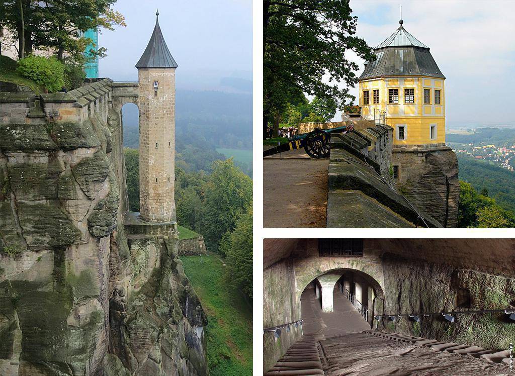 присущей королевским резиденциям пышности. В Кёнигштайне есть замок, казармы, хранилища и самый глубокий