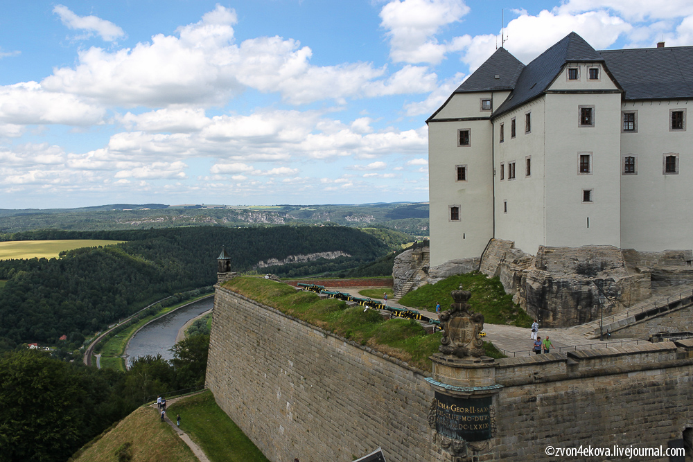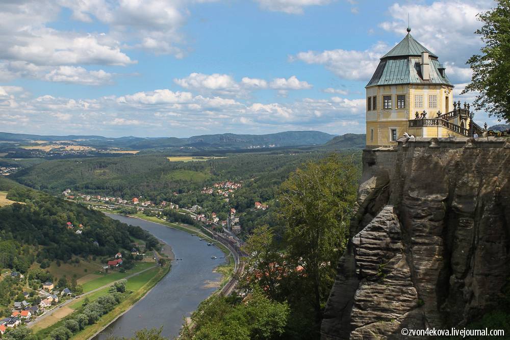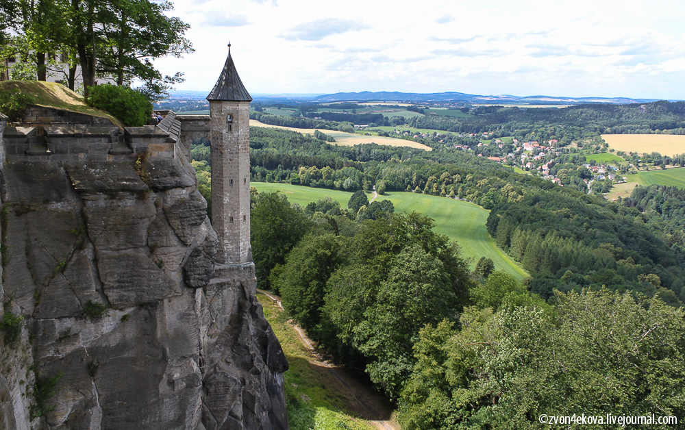 будто парит над окружающими городками, врастая стенами в скалистое плато. А ещё из Кёнигштайна открываются