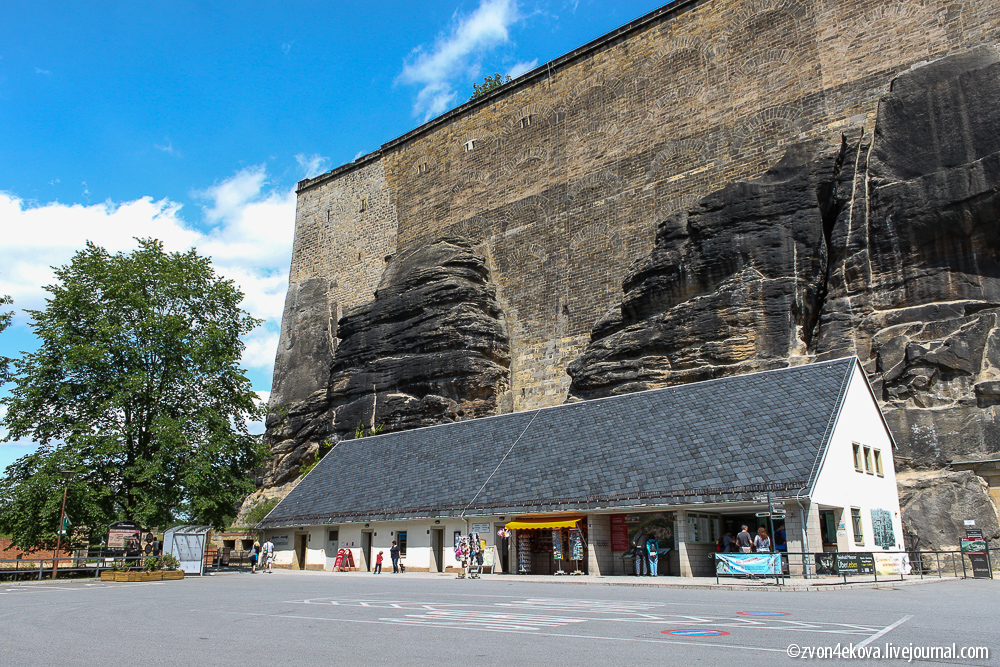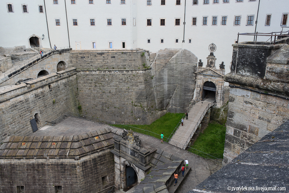 7. Кёнигштайн расположен на скалистом основании, которое незаметно переходит в стены невероятной высоты.