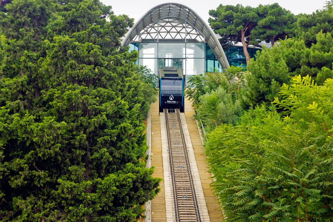 Бакинский фуникулер представляет собой состав из двух вагонов, которые движутся по однопутному участку. Прокатиться можно с 10.00 до 22.00 каждый день, кроме понедельника.
