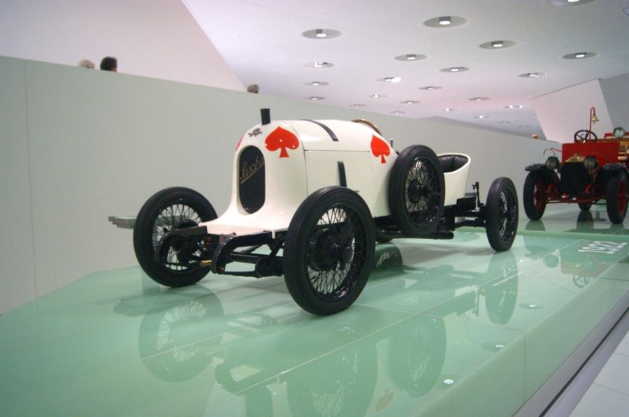 Новое место работы Фердинанда Порше в 1923 году – компания “Daimler-Motoren-Gesellschaft” в Штутгарте, должность – главный конструктор, первая разработка – модель с компрессорным двигателем объемом 2 л для участия в “Гран-при Италии”. Мощность восьмицилиндрового двигателя (170 л.с.) позволяла развить максимальную скорость 180 км/ч. Конструкция этого автомобиля стала канонической для всех “мерседесовских” гоночных машин на рубеже 20-30-х годов, таких как “Typ SS” или “SSK”. Кстати, экземпляр модели “2-Litre Monza” фирменного белого цвета (на фото) является собственностью соседнего музея “Mercedes-Benz”, а в экспозицию “Porsche Museum” попал “по обмену”.