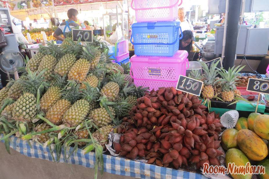 - Фруктовый рынок на улице Патак (Patak) работает ежедневно с 7:00 до 19.00. Как уже догадались, здесь большой выбор фруктов, а также овощи и готовая еда. Координаты: 7.824886, 98.301767