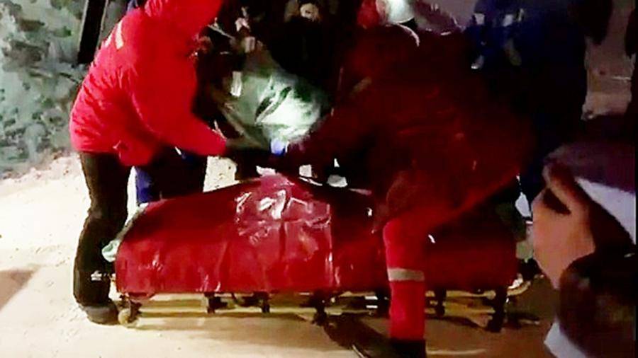 Эвакуация пострадавшего при обрушении в цеху на Норильской обогатительной фабрике