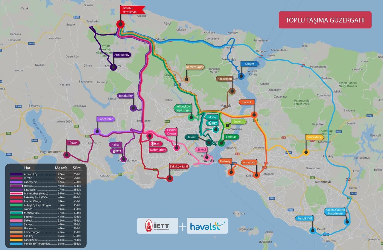 Также есть и шаттлы Havaist, иначе называемые скоростными автобусами, которые довезут пассажиров до площади Султанахмет или до Таксим за 18 лир. Особенность данного вида транспорта состоит в том, что водители не останавливаются по пути. В результате дорога займет не больше получаса, исключение составляют лишь пробки в часы пик, тогда поездка продлится до 80 минут.