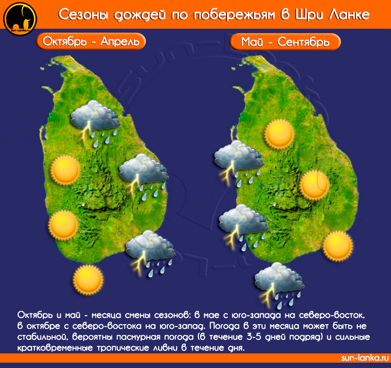 Разница в погоде по сезонам на побережье Шри-Ланки