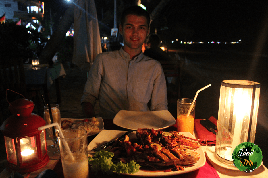 За 1500 руб. нам накрыли стол из морского лобстера, рыбы, приготовленных на гриле и принесли что-то из алкогольных напитков, я не разбираюсь – мы не употребляем алкоголь, вместо этого я попросила принести нам свежевыжатые соки!:)