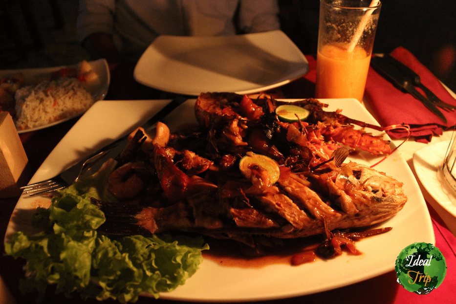 Морской лобстер, рыба, приготовленные на гриле. Скорее всего они были пойманы ранним утром местными рыбаками