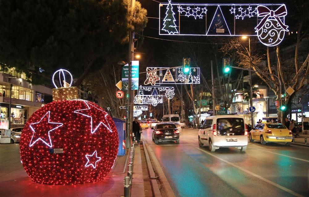 В качестве украшения могут использоваться искусственные елки, поскольку натуральные деревья не выдерживают жаркого климата Турции.