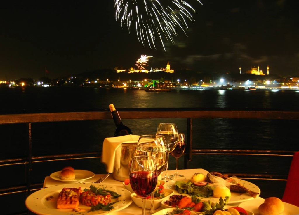 Если вы будете в Стамбуле, то обязательно зайдите на Галатский мост или загляните на площади Таксим и Султанахмет. Там накрывают столы с праздничной едой и запускают красивейшие салюты. Запоминающейся будет встреча Нового года на борту теплохода, следующего по Босфору.