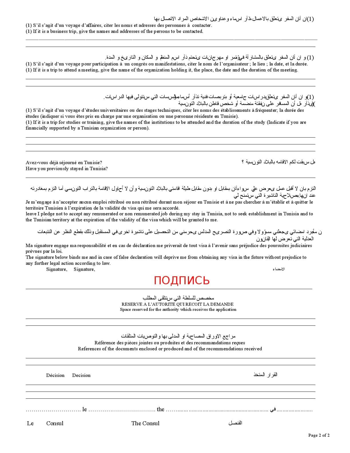 Образец анкеты на визу в Тунис 2