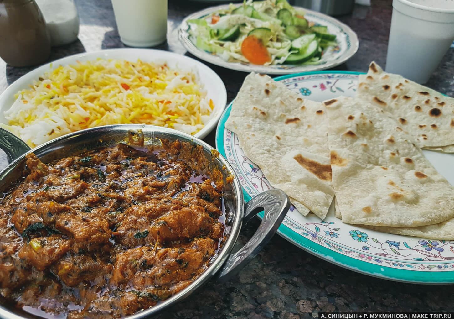 Один из наших ужинов. Вкусную и недорогую еду в Дубае можно найти в индийских и пакистанских ресторанчиках.
