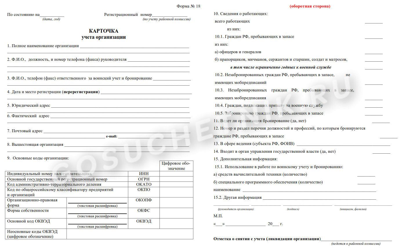 Образец заполнения Формы 18 для военкомата на 01.01.2020