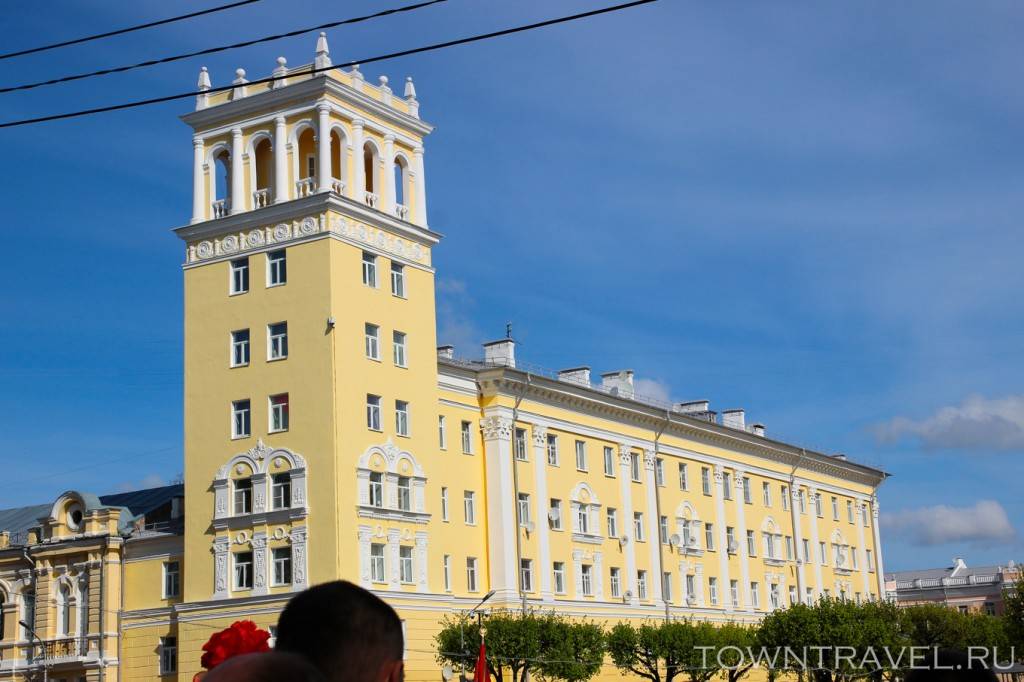 На пересечении улиц Карла Маркса и Октябрьской революции красуется высотный 46-квартирный дом с башней. Он был возведен в 1953-1954 годах по проекту архитектора В.И. Бухтеева. Во время его строительства были найдены остатки Ильинской церкви.