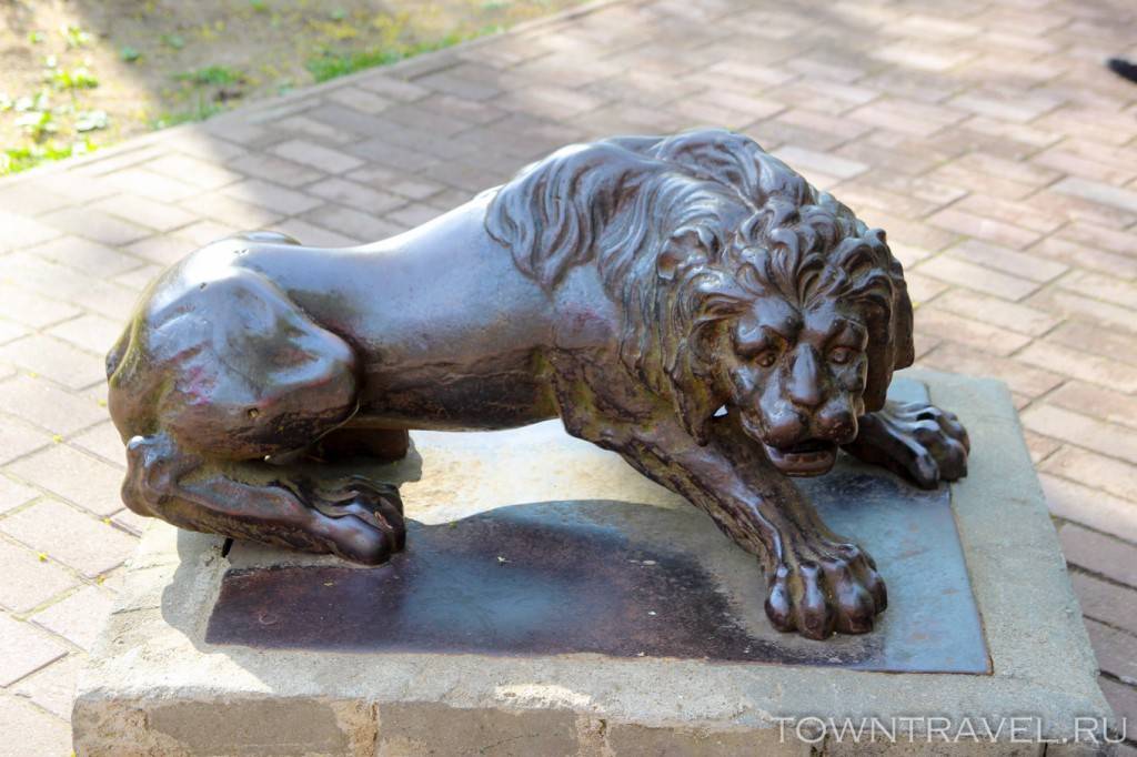 Неподалеку от знаменитого оленя расположен еще один популярный памятник «Два льва». Скульптура вывезена в качестве трофеев с дачи того же Г. Геринга.