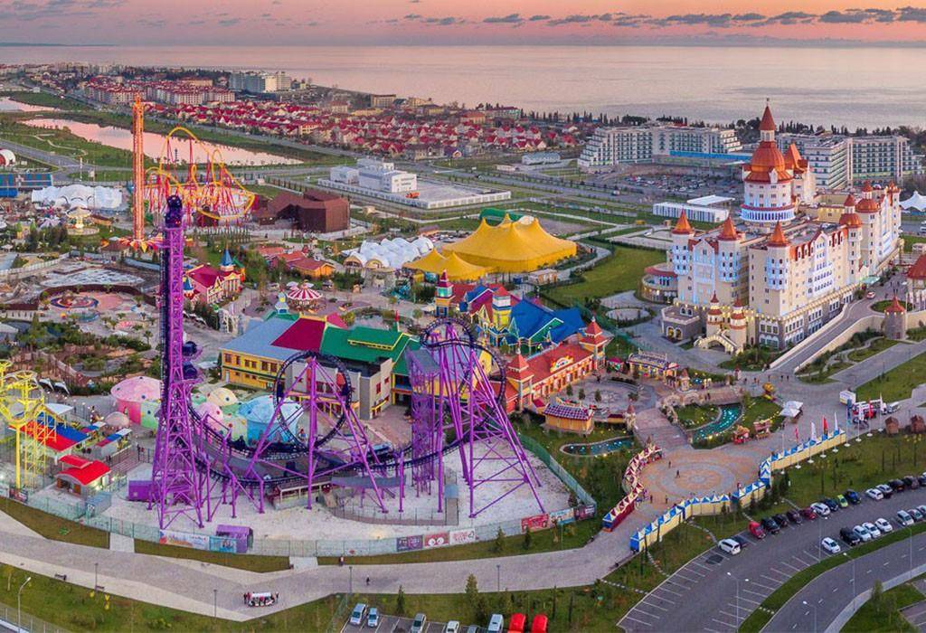 О нем говорят как о русском Диснейленде. В стоимость единого билета, входят аттракционы, дельфинарий и множество развлечений для детей и взрослых. Огромная песочница, персонажи из сказок, аниматоры.