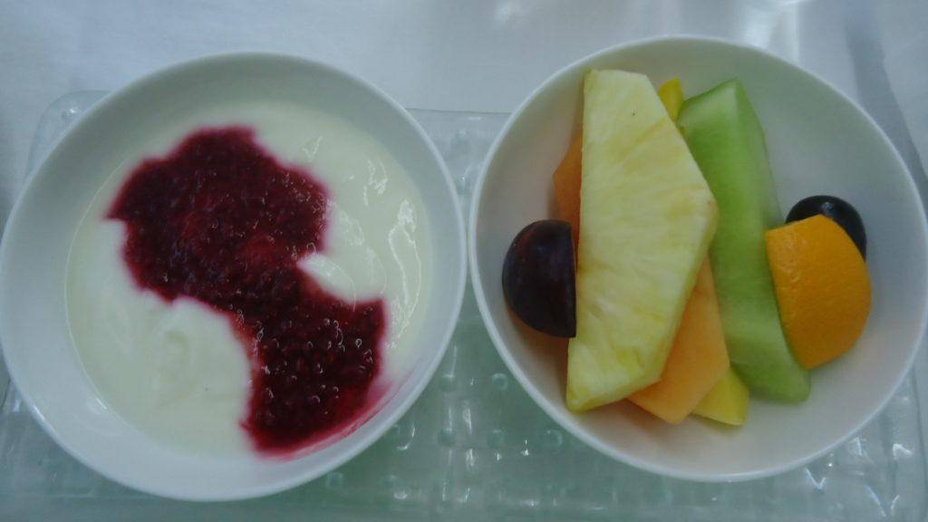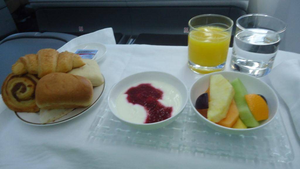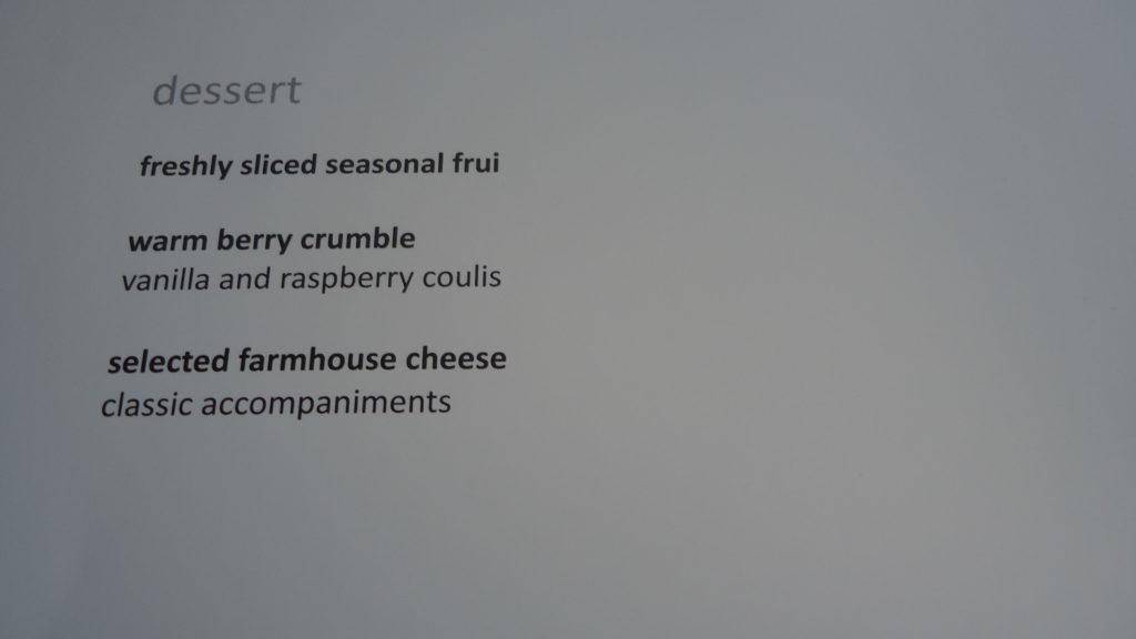 Завтрак на бумаге выглядел немного скромным, а вот выбор блюд для ланча был умеренно впечатляющим. Концепция dine on demand была на этом рейсе весьма кстати; некоторые пассажиры предпочли сразу же начать с ланча.