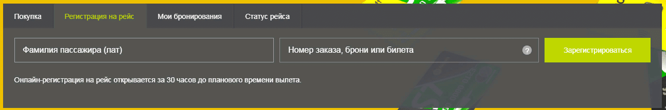 Регистрация на рейс в режиме онлайн осуществляется в определенный временной промежуток: