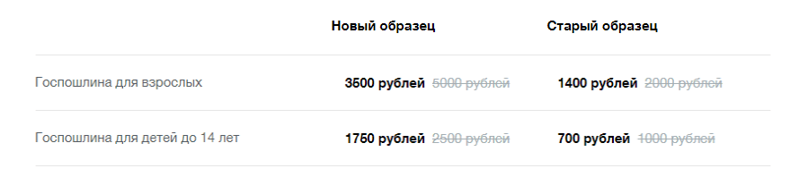 Сумма платежа зависит от типа оформляемого документ и человека, для которого оформляется документ. Об этом следует информация ниже.
