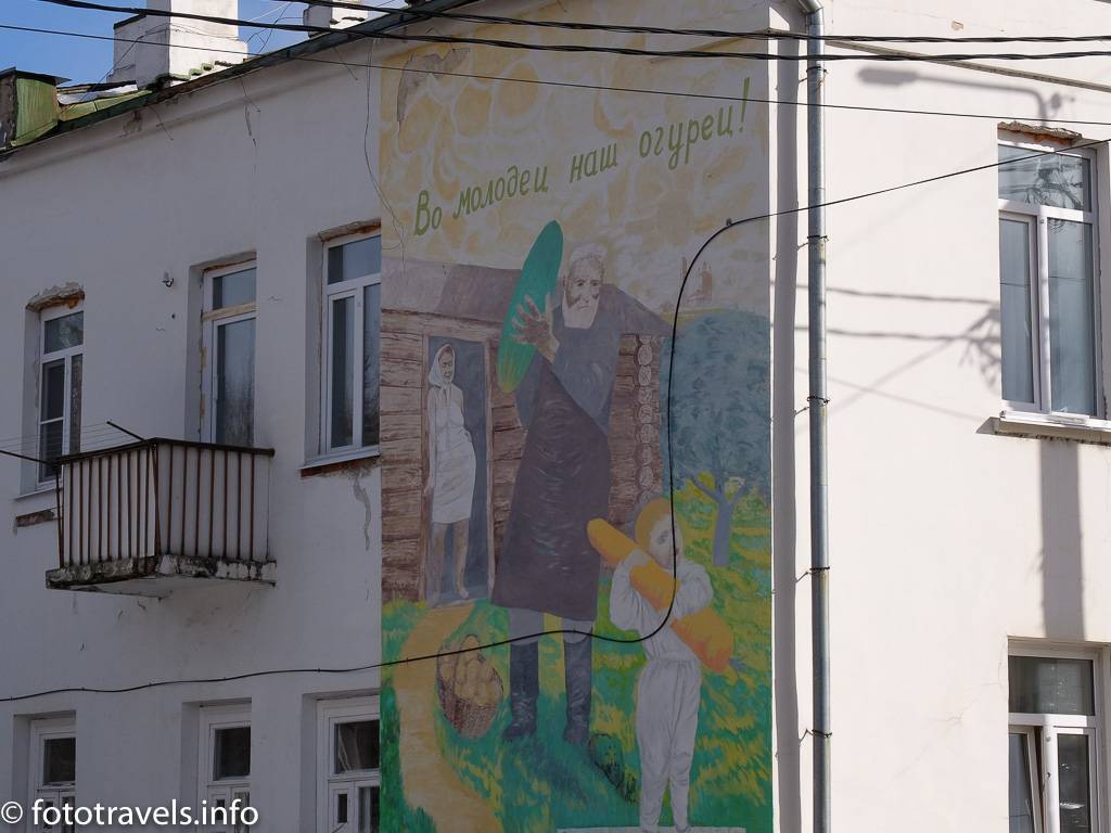 Талантливый, но непризнанный, пенсионер Владимир Овчинников сделал город интереснее. Его руками сотворены на стенах зданий забавные фрески. Этот вид творчества появился в Боровске относительно недавно – не более 15 лет назад.