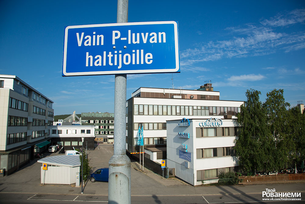 Места, в которых стоянка разрешена, в стране Суоми указываются таким же знаком, как и в РФ: