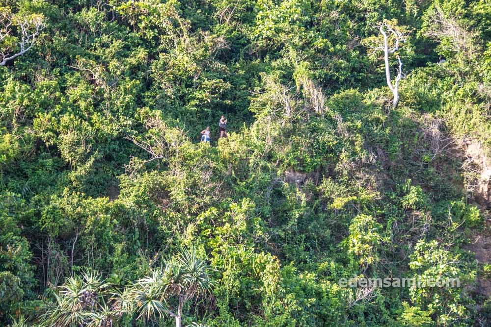 А пляж – бинго! – сильно внизу. Опять ступени! В принципе, в относительно нормальном состоянии – для земляных ступеней, я имею ввиду. Если присмотреться, то светлую полоску ступеней немного видно на противоположном склоне.