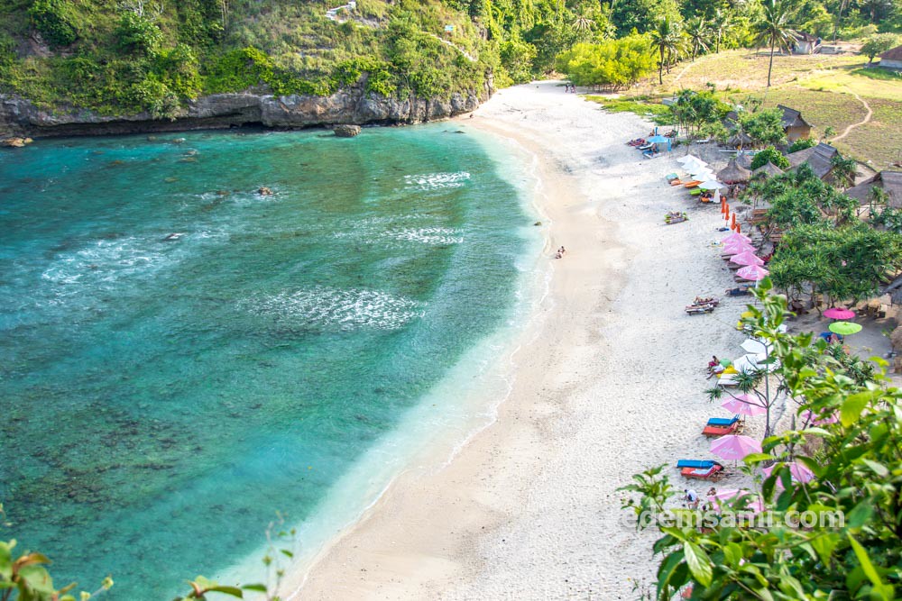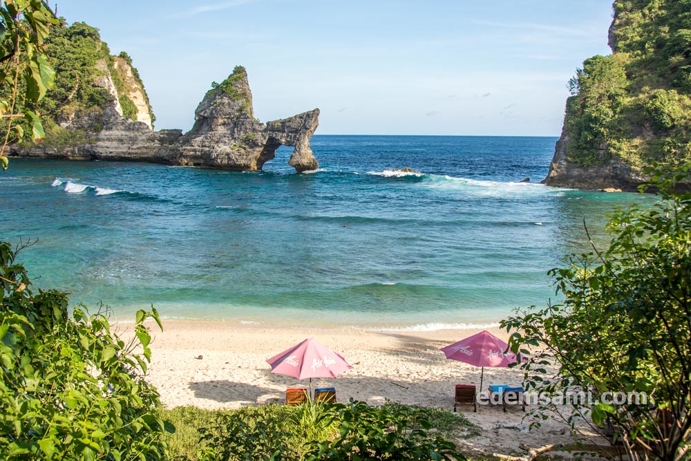 - Пляж Atuh beach на северном побережье острова. До пляжа нужно добираться по горному серпантину, а потом идти по тропе от дороги до берега. Ориентиром пляжа может служить храм Atuh Temple.