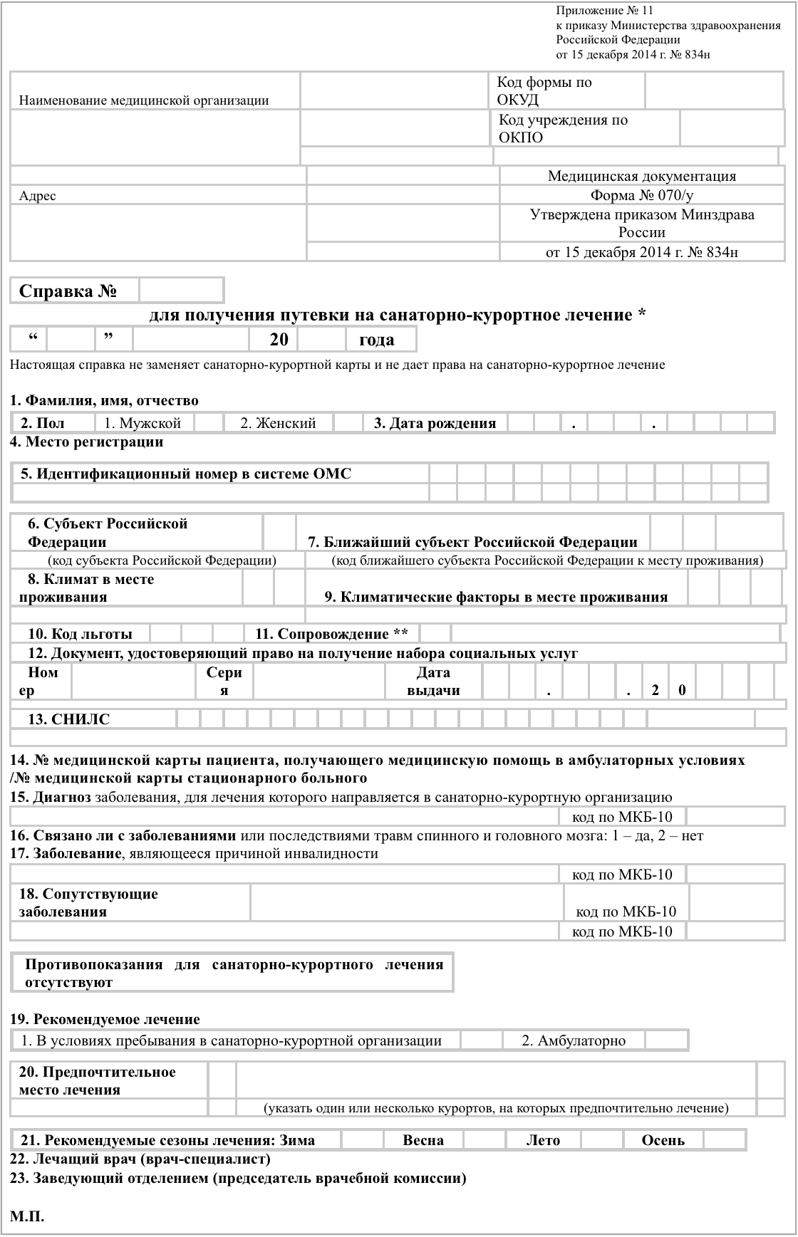 Справка по форме № 070/у выглядит так