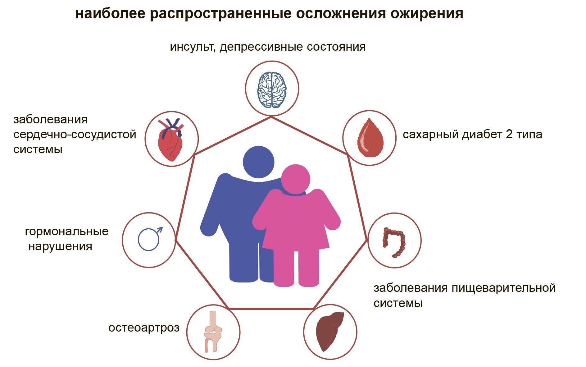 Большинство людей считают, что ожирение сопровождается трудностями в выборе одежды нужного размера, сложностью передвижения пешком, неэстетичным внешним видом. В реальности последствия данного заболевания куда более серьезные, ведь оно влияет на состояние внутренних органов и биохимические процессы, протекающие в организме. Наиболее распространенными осложнениями ожирения являются: