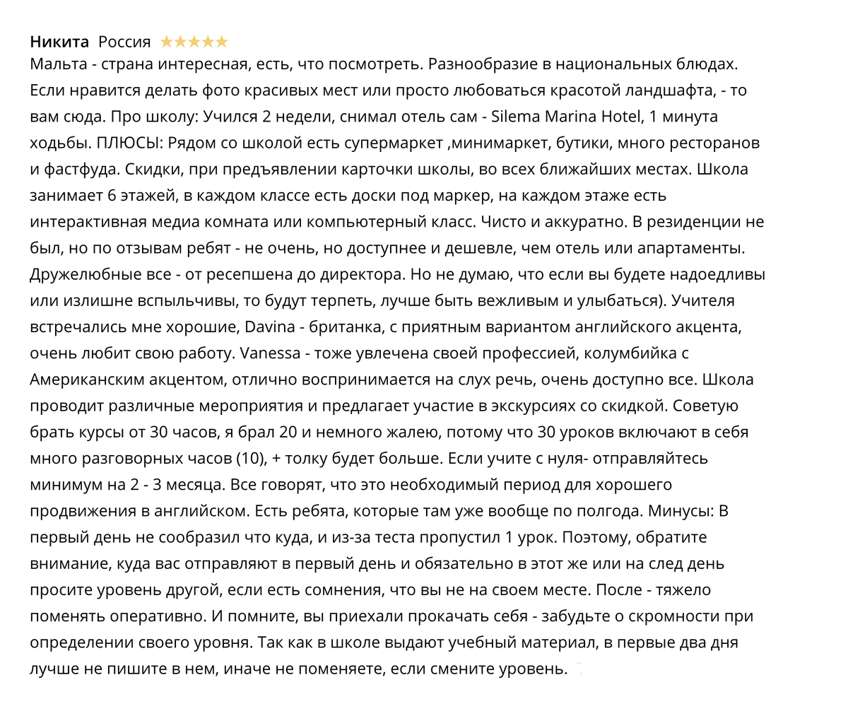 Я выбирал между двумя школами: ACE English и inLingua. Их рекомендовал мой преподаватель в России, а в интернете о них много хороших отзывов. Думаю, я бы не ошибся при любом выборе, но остановился на inLingua в городе Слима. Школа входит в международную сеть, у нее многолетняя история и меньше негативных отзывов.