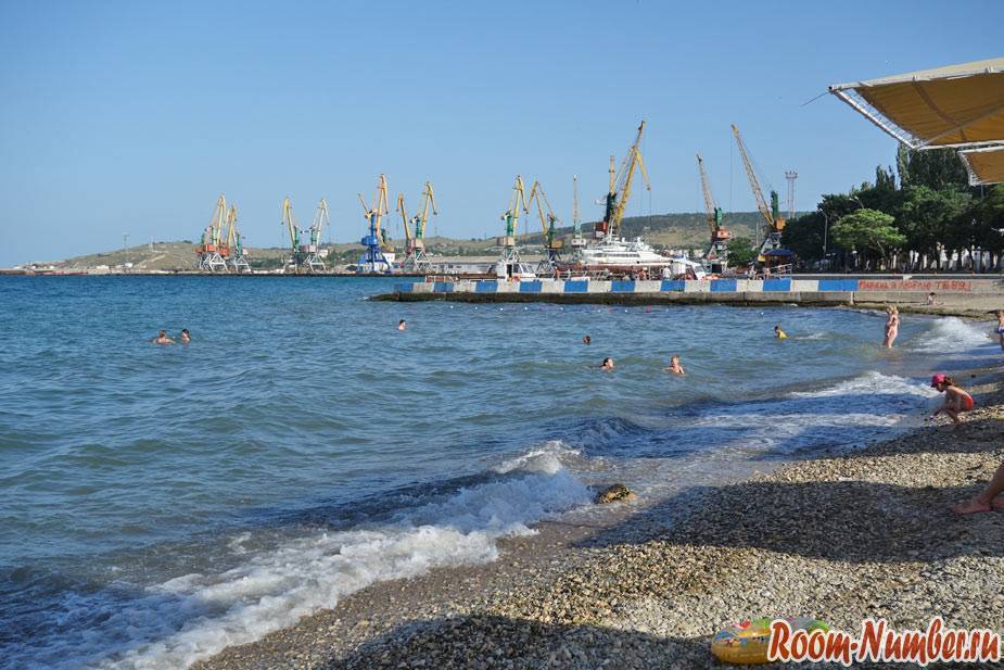 Мы застали время, когда к берегу прибивало много водорослей. От них идет запах и вода в таком месте склизкая. Пока водоросли встречались только в Феодосии.