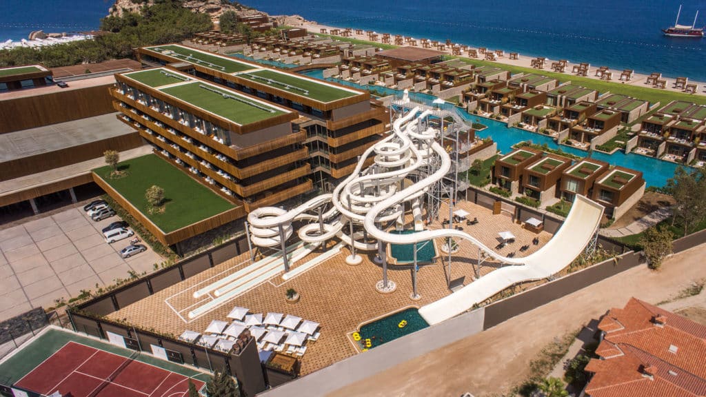 Одна из изюминок отеля — большой аквапарк для всей семьи. Он состоит из 22 водных горок: 14 из них предназначены для детей, остальные же — более экстремальные и понравятся гостям постарше. В детской аквазоне постоянно работают аниматоры, готовые развлекать малышей и помогать им кататься на аттракционах.