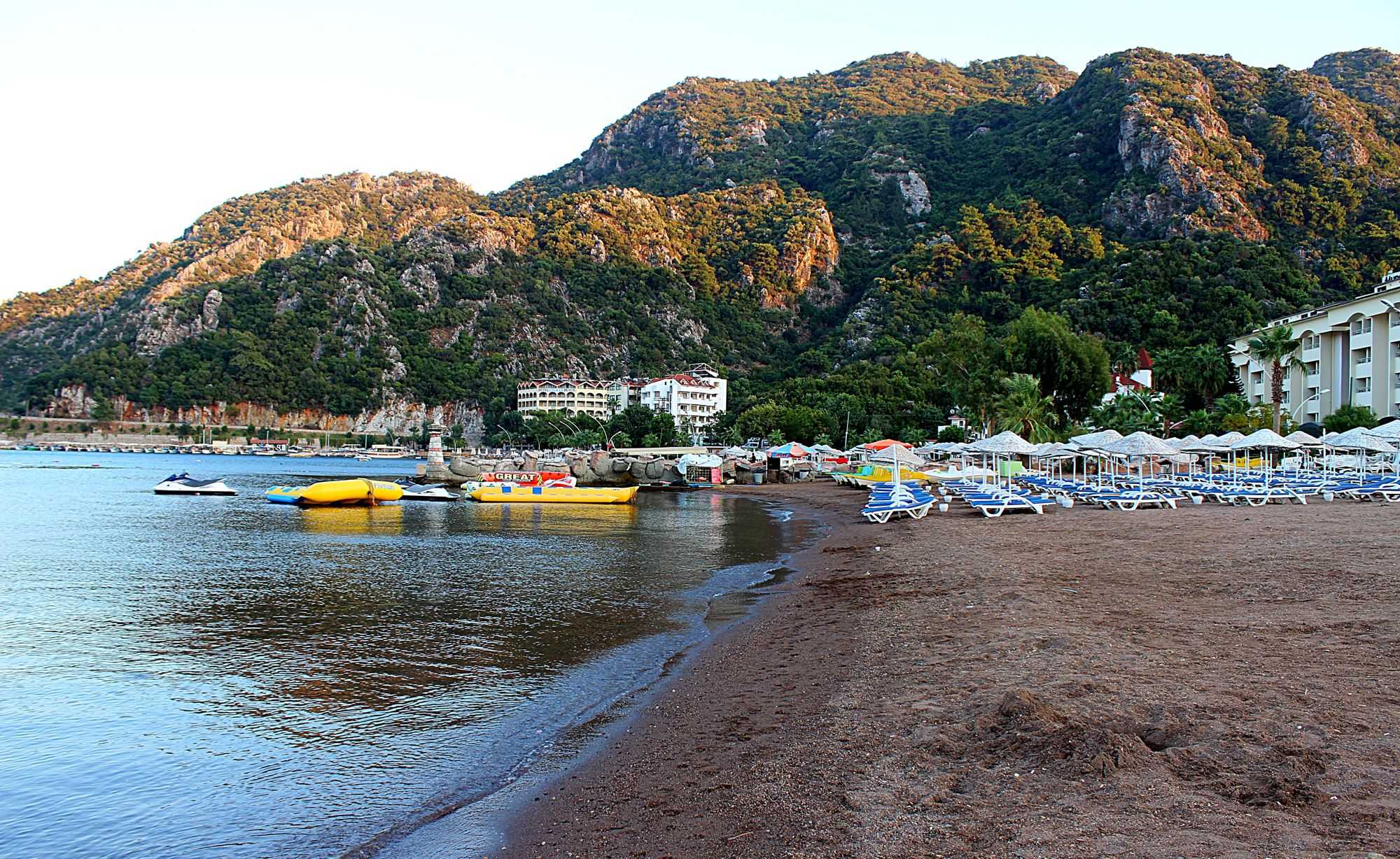 Пляж находится в окрестностях курорта Мармарис и является частью одноименного городка. От центра курорта сюда можно дойти за час, или же взять в аренду байк. Сюда преимущественно приезжают семейные пары с детьми. Этому располагают комфортные условия: спокойное и чистое море, пологий вход. Пляж покрыт песком вперемежку с мелкой галькой. К тому же здесь целебный воздух, недалеко расположились термальные источники, где можно оздоровиться всей семьей. Этот пляж выбирают те, кто любит комфорт и ценит высокое обслуживание.