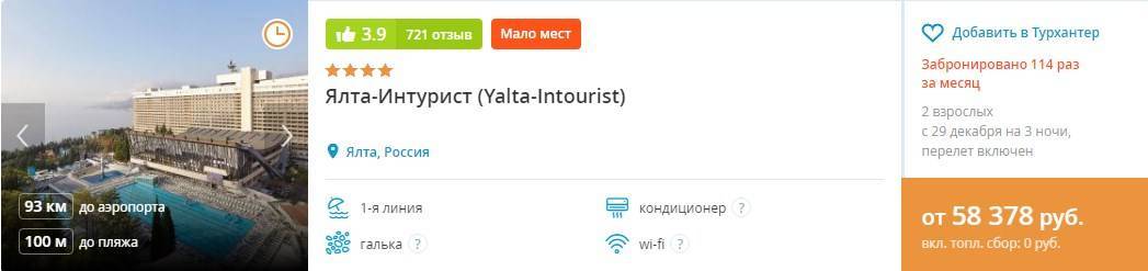 Тур на 3 дня с проживанием (отель с завтраками)в Ялте. Перелет (топливный сбор включен) +отель — 58378 руб.