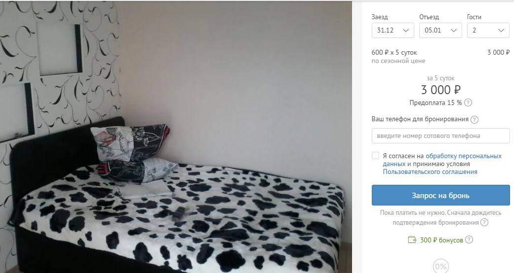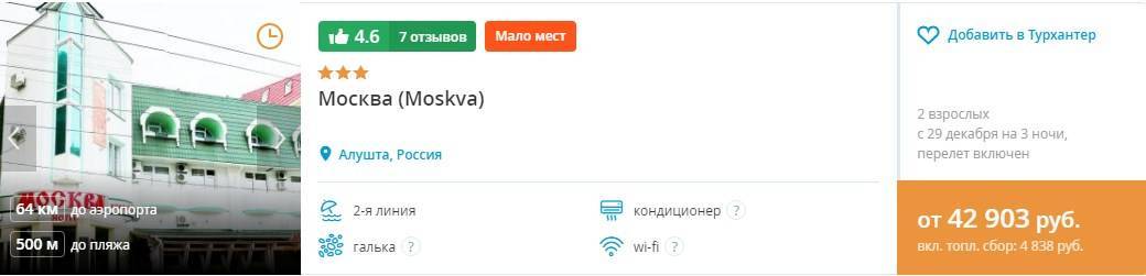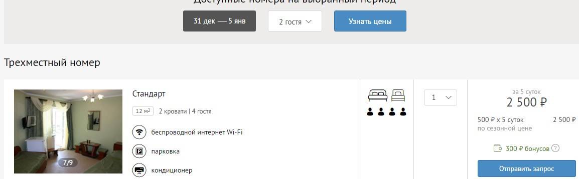 Несколько вариантов для примера с сайта Суточно.ру. Даты с 31 декабря по 5 января, номер на два человека.