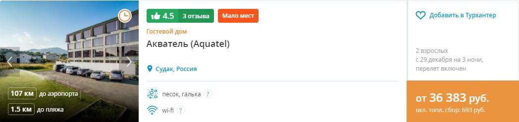 Тур на 3 дня с проживанием в Судаке, отель + перелет (топливный сбор включен) — от 36383 руб.