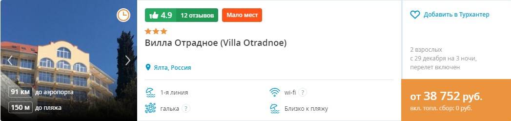 Вилла в Ялте. Отель (3 ночи) +перелет (топливный сбор включен) — от 38752 руб.