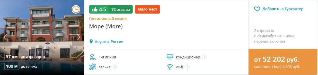 Цены в отелях Крыма