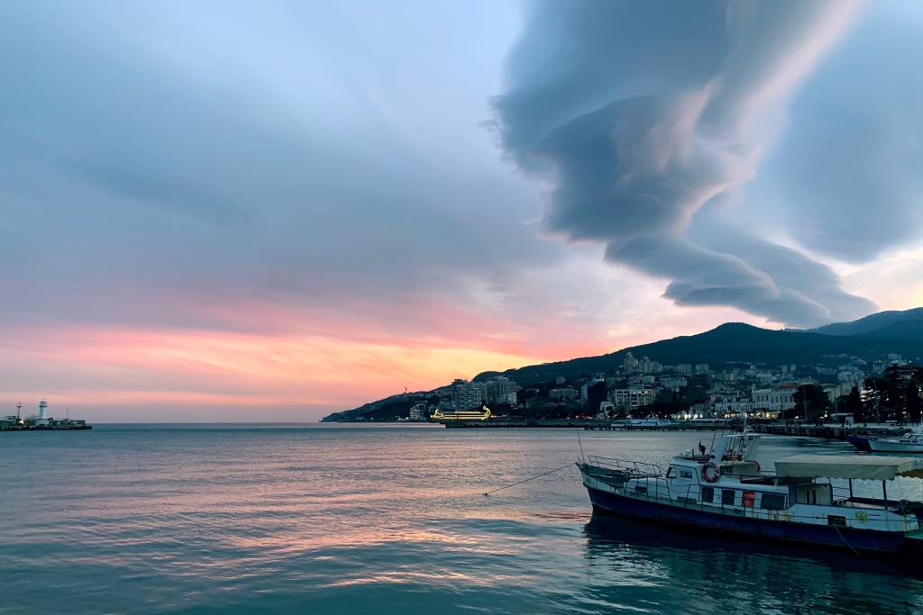 Весенний закат над набережной Ялты, Крым