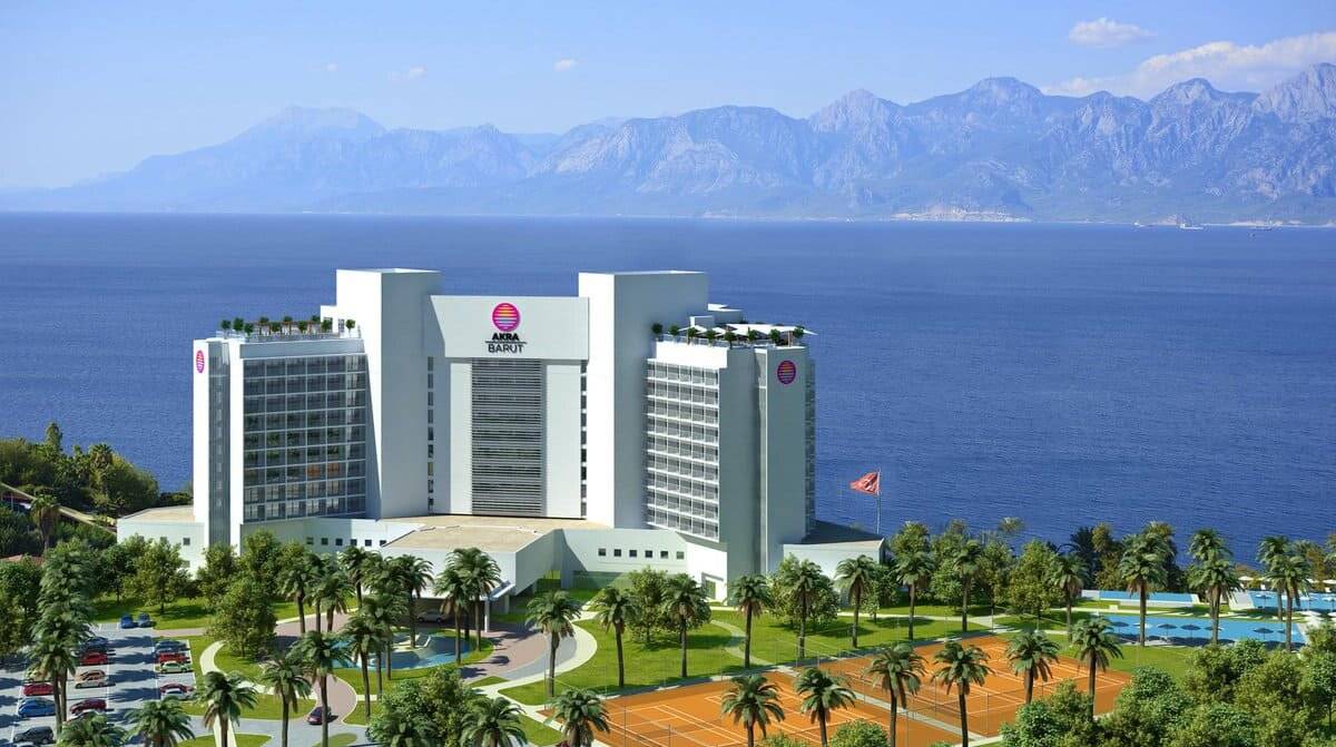 Выбирая отель «Акра», туристы получают возможность отдохнуть на самом берегу моря, в атмосфере настоящего Средиземноморья. Корпус «Акра Барут» вмещает 470 номеров различных категорий, другое строение – «Акра Парк Барут» – находится ближе к морю, в нём только 58 апартаментов. Пройти к «Парусу» можно по пешеходному мостику.