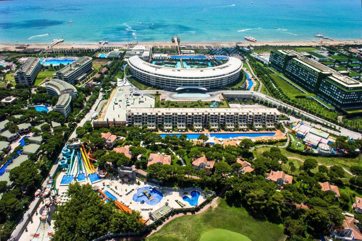 Отель расположен на берегу Средиземного моря в турецком курортном городе Белек. Этот 5-звездочный комплекс предоставляет своим гостям широкий спектр услуг и удобств, включая роскошный SPA-центр, аквапарк, бассейны, гольф-поле и рестораны с различными кухнями мира.