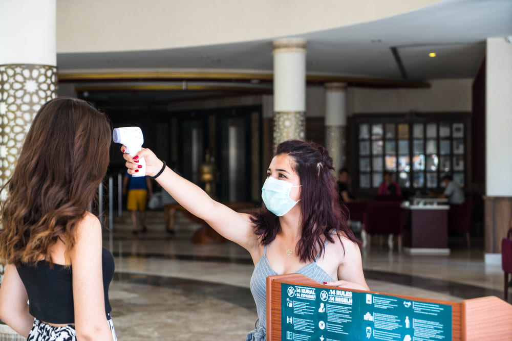 На входе в отели и предприятия общественного питания всем гостям измеряют температуру. В отелях отдельные номера выделены под оборудованный изолятор, где работает отдельный, специально выделенный персонал. Кроме того, специальный персонал обслуживает и в зонах общественного питания, чтобы избежать контактов гостей с продуктами и соблюсти все правила социального дистанцирования. Например, гости самостоятельно не наливают чай и не касаются кофемашин в местах общественного пользования.