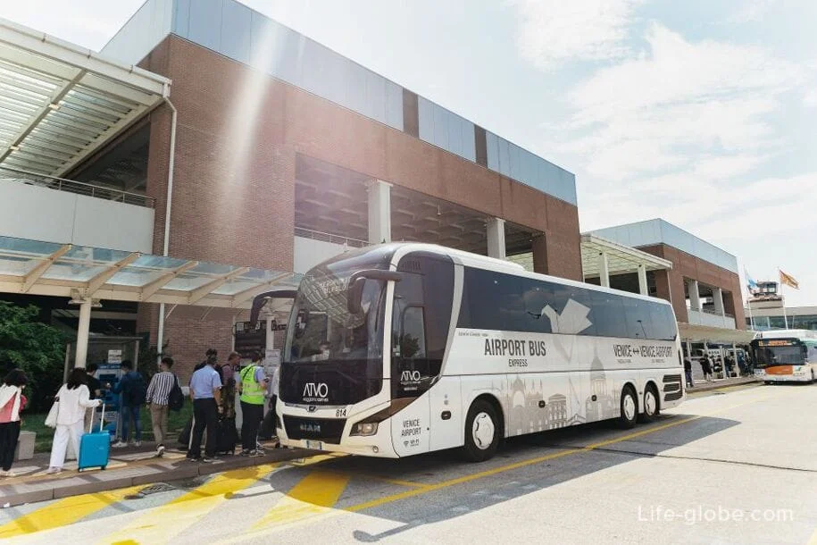 1. Автобусы-экспрессы линии №35 курсируют от аэропорта Марко Поло до площади Рима (Piazzale Roma) на островной исторической части Венеции.